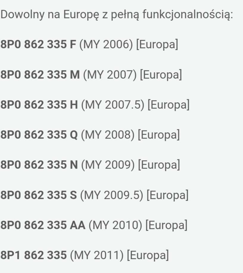 a4b6quattro 1 016 #7332 Napisano 4 sie 2021 08:57:24 Panowie jaki moduł Bluetooth, oprócz wersji Q jest high, czy z literką C ,to też high? U mnie jest z Końcówką A ,wersja podstawowa dla tego chce zmienić 😁 Udostępnij tę odpowiedź Odnośnik do odpowiedzi Udostępnij na innych stronach